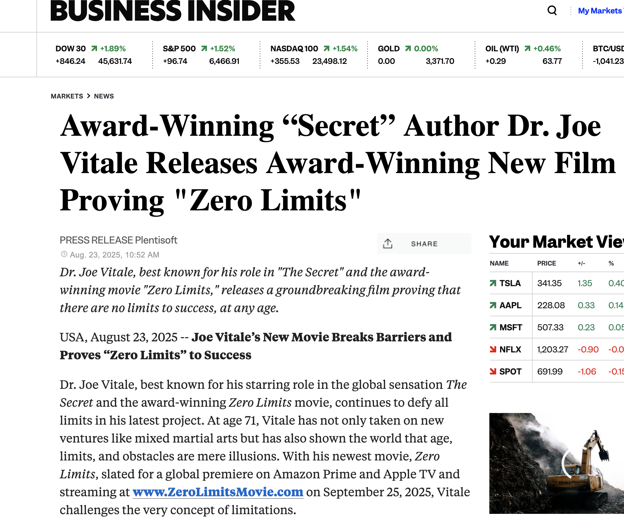 Dr. Joe Vitale is a globally known author, speaker, musician, and star of The Secret and the award-winning new film Zero Limits. He’s been featured in Rolling Stone, The New York Times, and was recently honored with the Presidential Lifetime Achievement Award. Discover more and watch the trailer for Zero Limits at www.ZeroLimitsMovie.com