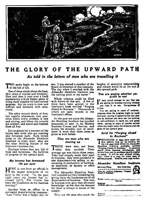 Barton wrote numerous legendary advertisements, including the one above for the Alexander Hamilton Institute. I’ve collected several of his ads for my book on him.